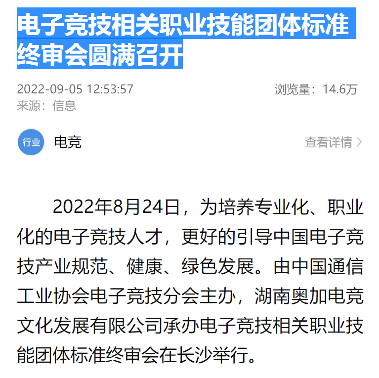 2022年5月25—26日,“中國通信工業(yè)協(xié)會電子競技分會‘游戲服務(wù)師’職業(yè)技能團(tuán)體標(biāo)準(zhǔn)終審會”在長沙順利舉行。中國通信工業(yè)協(xié)會電子競技分會、武漢福祿網(wǎng)絡(luò)科技有…