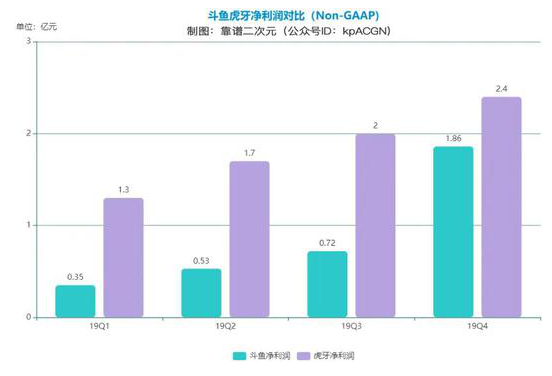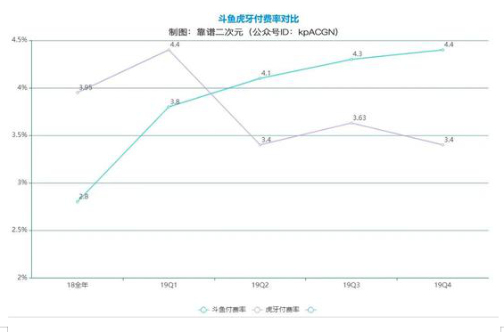 更重要的意義在于斗魚第四季度ARPPU從19年Q1的226元提升到259元,比2018年的208元有了不小的提升。付費(fèi)率也從19年Q1的3.8%增長(zhǎng)到4.4%,去年全年斗魚付費(fèi)率僅為2.8%。掙扎了三個(gè)季度后斗魚Q4凈利潤(rùn)(Non-GAAP)終于突破1億元。