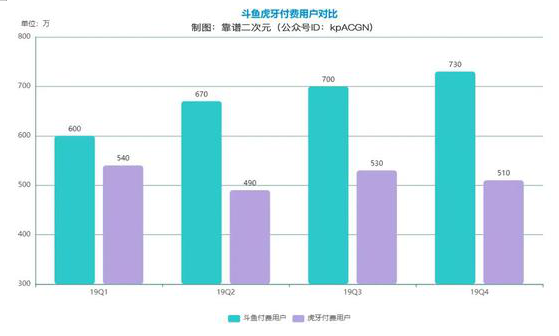虎牙的問(wèn)題是用戶底子薄,19年Q1虎牙整體月活比斗魚少了3500萬(wàn),移動(dòng)月活只領(lǐng)先400萬(wàn)不到,這也導(dǎo)致隨后在19年Q1付費(fèi)用戶上,虎牙540萬(wàn)被斗魚600萬(wàn)反超。