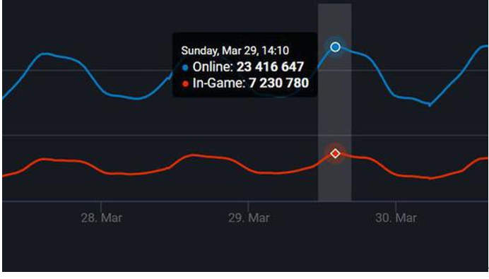 新冠病毒在歐美肆虐之后,Twitch和Youtube游戲直播觀看的人數(shù)在近期分別增長了10%和15%,全球最大游戲平臺Steam的同時在線人數(shù)也達到了2300萬人大關(guān)。