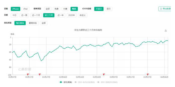 從過(guò)程來(lái)看,行業(yè)和玩家?guī)缀跻蚜?xí)慣了國(guó)產(chǎn)游戲上線首周爆量、沖榜的操作,但《浮生為卿歌》走勢(shì)非常奇葩,第一個(gè)月iOS暢銷(xiāo)榜在30-40名,第二個(gè)月爬升到20-30名,第三個(gè)月穩(wěn)定在10-20名,今天(4月7日)暢銷(xiāo)榜第10名!這種慢熱的買(mǎi)量節(jié)奏,到底是玩友就是自信呢、還是就是懂女性用戶呢?至少這3個(gè)月,讓圍觀的同行從對(duì)《浮生為卿歌》最初的不在意、變得越來(lái)越在意倒是真的。