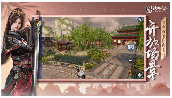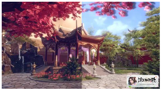 為了營(yíng)造古風(fēng)的氛圍與環(huán)境,游戲在背景上采用了大量了古風(fēng)建筑的描寫(xiě),同時(shí)加入了晝夜系統(tǒng),玩家可以體驗(yàn)不同時(shí)間上的光影效果。據(jù)游戲官方表示“設(shè)計(jì)師們?cè)趫?chǎng)景建模以及人物建模上,參考了大量中國(guó)古代歷史資料,并且遵循唯美、真實(shí)、細(xì)膩等原則,再經(jīng)過(guò)大量的細(xì)節(jié)處理、特效渲染等一系列的復(fù)雜步驟之后,令玩家觸手可及這原汁原味的古風(fēng)大世界。”