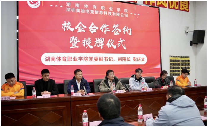湖南體育職業(yè)學(xué)院黨委副書記、副院長彭慶文在致辭中指出,校企合作是深化產(chǎn)教融合的關(guān)鍵舉措,也是推動職業(yè)教育高質(zhì)量發(fā)展的必由之路。借助深圳市南山區(qū)的政策東風(fēng),此次與奧加電競的合作,將為學(xué)院電競專業(yè)的學(xué)生提供更為廣闊的發(fā)展空間和更優(yōu)質(zhì)的實(shí)踐機(jī)會,助力學(xué)院創(chuàng)新電競?cè)瞬排囵B(yǎng)模式,培養(yǎng)出更多適應(yīng)行業(yè)發(fā)展需求的高素質(zhì)專業(yè)人才。彭院長還表示,學(xué)院將充分發(fā)揮自身在教育教學(xué)、師資力量等方面的優(yōu)勢,與奧加電競緊密協(xié)作,共同探索產(chǎn)教融合的新模式、新路徑。