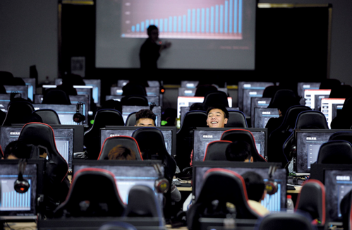 2017年10月,成都,學(xué)生正在上電競訓(xùn)練學(xué)課程。成都商報王效/視覺中國