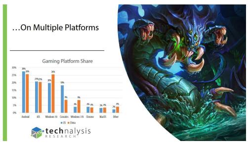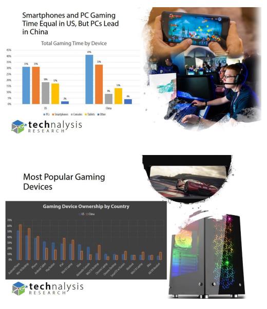 最近,市場調(diào)查機構(gòu)TECHnalysis Research公布了美國和中國市場的游戲消費趨勢調(diào)查報告。據(jù)報告顯示中美玩家在看游戲視頻和直播上的時長很接近,美國玩家平均每周花12個小時在Twitch和YouTube上看游戲內(nèi)容,中國玩家平均每周花11小時在斗魚和優(yōu)酷土豆上觀看游戲內(nèi)容。