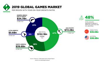 這份報告同時顯示,中美兩國2019年游戲收入占總?cè)蚴袌霰壤秊?8%。