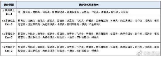 人民網(wǎng)《游戲適齡提示草案》將游戲適齡范圍劃分為“18歲以上(18+)”“16歲以上(16+)”“12歲以上(12+)”“6歲以上(6+)”四級。因6歲以下兒童正處于視力發(fā)育等的關(guān)鍵時期,不建議他們獨(dú)自使用電子產(chǎn)品進(jìn)行游戲。