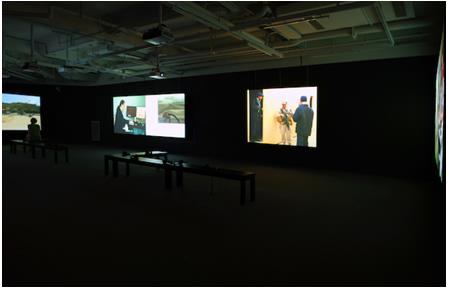 此次展覽中,藝術(shù)家哈倫?法羅基的視頻裝置作品《嚴(yán)肅游戲》就與游戲“反恐精英(CS)”有著密切的聯(lián)系。2009年,法羅基造訪了位于美國(guó)加利福尼亞州的海軍陸戰(zhàn)隊(duì)29棕櫚基地,在這里,他看到士兵們?nèi)绾卧谟?jì)算機(jī)游戲模擬的阿富汗街道中進(jìn)行射擊訓(xùn)練。在法羅基的作品中,我們可以看到實(shí)景拍攝的,在美軍看管下的阿富汗生活場(chǎng)景,也可以看到美軍在利用電腦進(jìn)行的模擬訓(xùn)練……