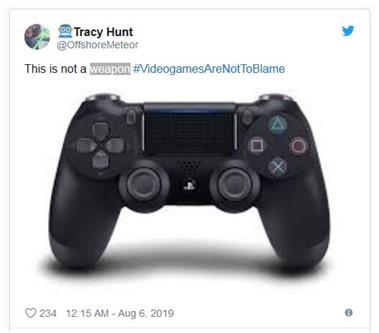 針對(duì)特朗普等美國共和黨員以及美國媒體(如Fox News)開始討論電子游戲?qū)寭羰录挠绊?,游戲界玩家們也群起在推特發(fā)起“#別怪罪電子游戲”(#VideogamesAreNotToBlame)抗議聲。畢竟,電子游戲的內(nèi)容一直都是保守官員在政治角力的借口。