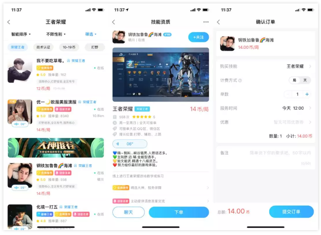 首先,陪練平臺(tái)存在的基本意義在于連接玩家和陪練大神——前者能夠與更適合自己的隊(duì)友一起游戲,或與高水平隊(duì)友開(kāi)黑并提升自身技術(shù);后者則能依靠自身游戲技能分享,獲得一份可觀的收入。
