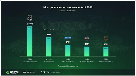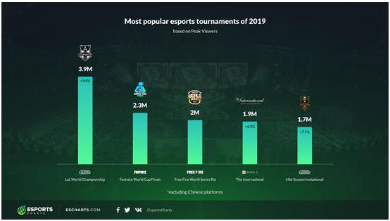 國(guó)外直播統(tǒng)計(jì)網(wǎng)站EsportsCharts發(fā)布了2019年國(guó)外直播網(wǎng)站統(tǒng)計(jì)報(bào)告,他們按照不同的標(biāo)準(zhǔn)對(duì)去年的電競(jìng)賽事進(jìn)行了排名: