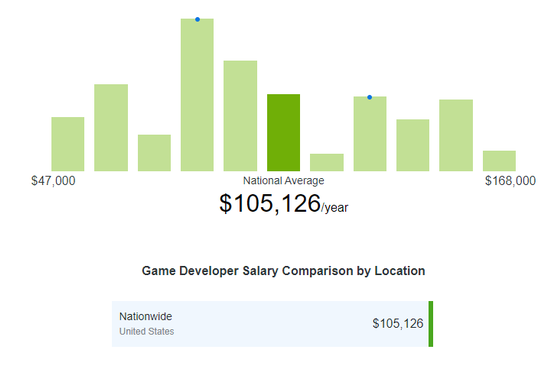 當(dāng)然,游戲行業(yè)確實(shí)收入要遠(yuǎn)高于平均水平,也一定程度上安撫了對瘋狂加班不滿的聲音。根據(jù)Zip Recruiter的數(shù)據(jù),2019年,美國游戲開發(fā)者人均收入是10.5萬美元,比美國家庭年均收入中位數(shù)5.7萬美元要高將近一倍。
