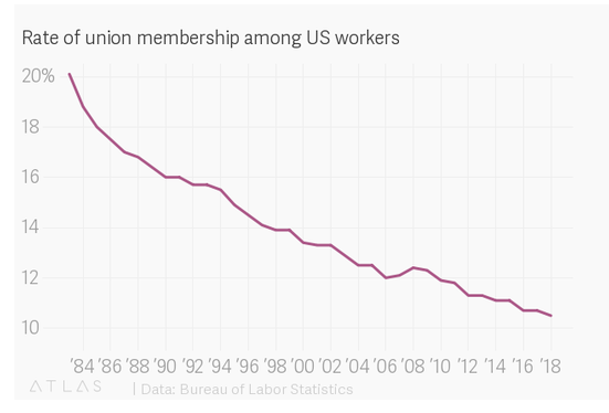 動(dòng)視暴雪鼓勵(lì)女性員工上傳自己的月經(jīng)狀況,甚至性行為頻率。管理人員可以直接通過后臺查詢這些信息從2018年開始,游戲產(chǎn)業(yè)成立工會(huì)有了越來越多支持的聲音。在2019年GDC游戲開發(fā)者大會(huì)的調(diào)研中,一半受訪者表示支持成立工會(huì),讓游戲公司的員工在和企業(yè)的談判中能夠有更多的話語權(quán)。不過工人組織能不能真正改善游戲公司員工目前的工作狀況,還是一個(gè)未知數(shù)。在過去30年間,全球化競爭使得工會(huì)生存的土壤越發(fā)艱難。美國工會(huì)參與率從1984年到現(xiàn)在已經(jīng)由20%跌到將將10%,其他發(fā)達(dá)國家工會(huì)衰落的趨勢也十分明顯。永遠(yuǎn)都有更貧困的地區(qū),有工人愿意用更低的價(jià)格和更糟糕的工作環(huán)境來換取一個(gè)工作機(jī)會(huì)。一些觀點(diǎn)認(rèn)為,工會(huì)被認(rèn)為是導(dǎo)致美國汽車行業(yè)衰落的一個(gè)重要原因。