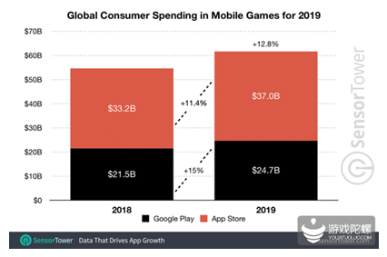 1 月 14 日消息,據外媒報道,市場分析公司 Sensor Tower 公布最新數據顯示,2019 年全球消費者在安卓和 iOS 設備手游上的支出高達 617 億美元,與 2018 年的 547 億美元相比增長了 12.8%。