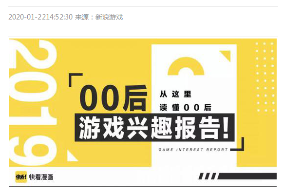 今天,在00后群體中具有廣泛影響力的快看漫畫發(fā)布了《00后游戲興趣報(bào)告》??炜绰嬁傆脩袅砍^2億,月活用戶超過4000萬,其中超過50%為00后,被QuestMobile等第三方評(píng)為最受00后歡迎的App。