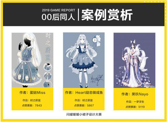 “閃耀暖暖小裙子設(shè)計(jì)大賽“是手游《閃耀暖暖》與快看漫畫共同舉辦的同人創(chuàng)作活動(dòng),活動(dòng)規(guī)則位為游戲人物設(shè)計(jì)時(shí)裝。該次活動(dòng)閱讀量為1500萬左右,吸引3.4萬用戶參與,下圖為本次大賽設(shè)計(jì)前三名作品展示。