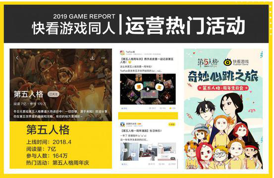 《第五人格》是一款上線于2018年4月的“老游戲”。憑借對(duì)于游戲同人活動(dòng)的持續(xù)投入,《第五人格》在過去的兩年中維持了較高熱度。在快看漫畫,《第五人格》專題頁擁有7億閱讀,僅“第五人格周年慶”一個(gè)活動(dòng)就吸引了數(shù)萬粉絲參與。
