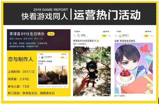 由于同人文化在00后游戲玩家中的巨大影響力,游戲企業(yè)進(jìn)行同人運(yùn)營活動(dòng)往往會(huì)產(chǎn)生事半功倍的效果,以下為快看游戲與游戲合作方在同人運(yùn)營中積累的一些案例。