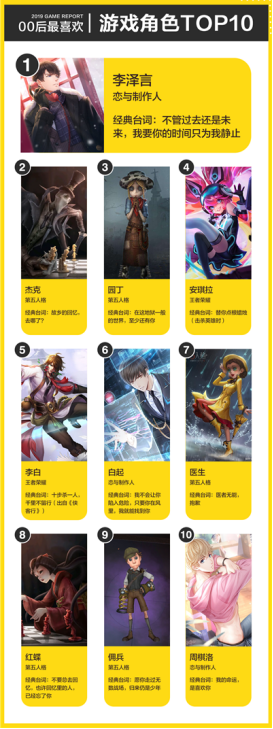 在“自己最喜歡的游戲角色”評(píng)選過程中,得票最高的前十名游戲角色均為游戲初始或者早期角色。
