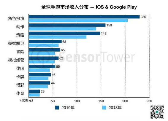 其中,來自iOS的收入近370億美元,占全球手游收入近60%,Google Play貢獻(xiàn)的收入為247億美元,占比為40%。