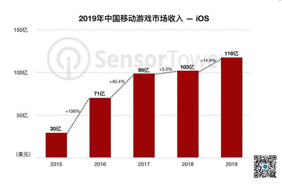 經(jīng)過2018年的行業(yè)調(diào)整之后,中國手游市場在2019年再次步入上升通道。國區(qū)iOS手游收入達(dá)到118億美元,較去年增長14.9%。增幅前五的游戲依次為網(wǎng)易《率土之濱》,三七互娛《一刀傳世》,騰訊《紅警OL》,網(wǎng)易《陰陽師》和炎魂《忍者必須死3》。