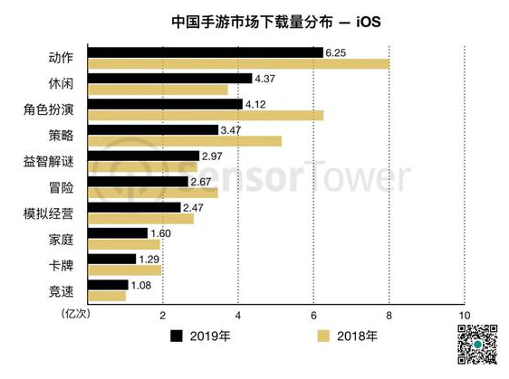 下載量方面,僅休閑游戲出現(xiàn)明顯增長,其它品類多數(shù)出現(xiàn)較大幅度下滑。主要原因是,休閑游戲在獲得版號(hào)方面處于相對領(lǐng)先優(yōu)勢。