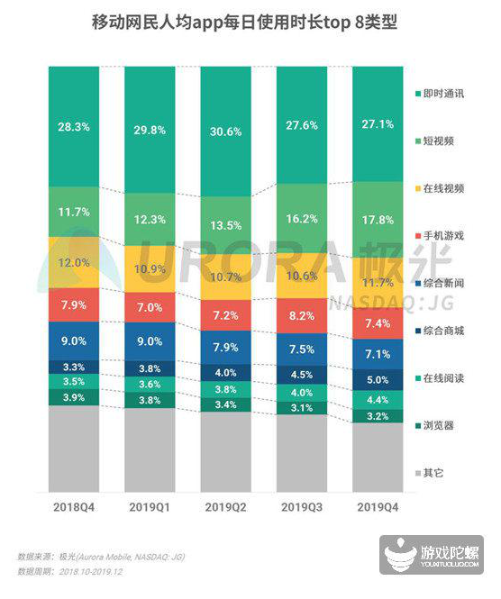2019年Q4人均安裝App達(dá)60款,手機(jī)游戲用戶使用時(shí)長占比降至7.4%