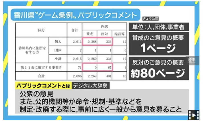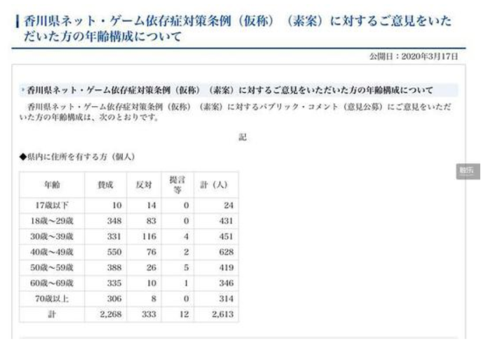 可想而知,在游戲大國日本,有關(guān)這項法案的消息一經(jīng)公布就引發(fā)了巨大爭議與激烈討論。但與人們想象中不同的是,外界爭議和討論對香川縣議會的決議并未產(chǎn)生太大影響。從1月10日提出草案,到3月18日正式通過,再到4月1日開始實施,《條例》在香川縣的推進迅速而流暢。