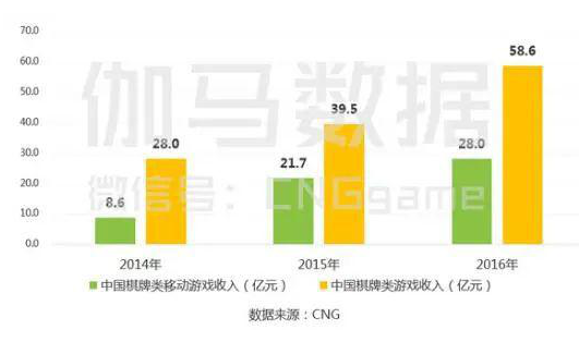 2016年同時也是棋牌游戲行業(yè)蓬勃發(fā)展的一年,2016年棋牌類用戶規(guī)模達(dá)2.58億人,市場規(guī)模達(dá)58.6億元。其中,地方性棋牌市場在2016年爆發(fā),天神互動9.86億,收購深圳一花科技,金立科技18.41億收購微屏科技,暢唐網(wǎng)絡(luò)上市,這些都是典型的地方性棋牌產(chǎn)品作為主打的公司。
