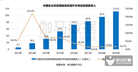 2019年中國自研游戲海外收入111.9億元,在美流水同比增長率高達59.3%