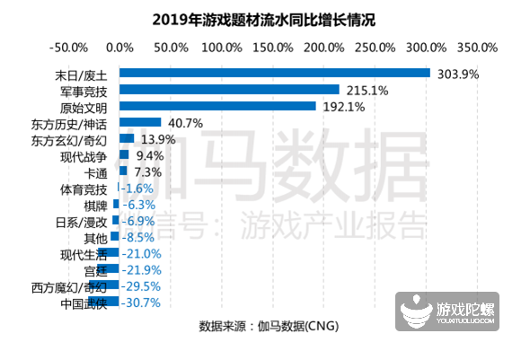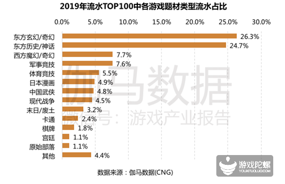 東方文化題材流水占比仍最高,末日/廢土類流水增速同比高達303.9%
