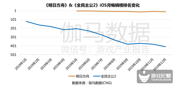 從各類題材流水同比增長率來看,末日/廢土、軍事競技、原始文明題材增長明顯,分別高達303.9%、215.1%、192.1%。這些題材的流水占比原本并不高,但依靠單品爆款所帶動,使得他們的增長率名列前茅。末日/廢土類是《明日之后》《明日方舟》,軍事競技類是《和平精英》、原始文明是《不休的烏拉拉》等。