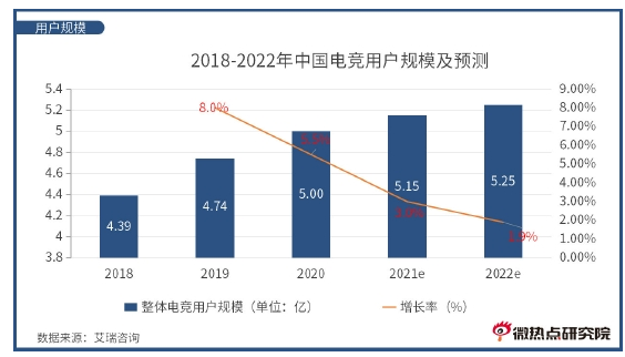 隨著電子競(jìng)技產(chǎn)業(yè)規(guī)模的擴(kuò)大,電子競(jìng)技用戶(hù)數(shù)量和電子競(jìng)技觀(guān)眾規(guī)模不斷提升。特殊時(shí)期,互聯(lián)網(wǎng)用戶(hù)的在線(xiàn)娛樂(lè)時(shí)間得以增加,電競(jìng)游戲成為眾多人居家休閑的重要方式之一。與此同時(shí),世界級(jí)電競(jìng)賽事在中國(guó)舉辦,電競(jìng)直播火爆等諸多因素的加持下,2021年我國(guó)電競(jìng)用戶(hù)規(guī)模預(yù)計(jì)超5億人。