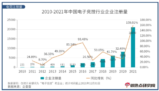 在政策紅利及市場(chǎng)增速下,大量資本涌入電競(jìng)行業(yè)。企查查數(shù)據(jù)顯示,2021年電競(jìng)企業(yè)新增注冊(cè)21190家,同比增長(zhǎng)159.01%。政策扶持、資本加持,中國(guó)電競(jìng)行業(yè)加速向正規(guī)化、專(zhuān)業(yè)化、多樣態(tài)發(fā)展,在當(dāng)今數(shù)字經(jīng)濟(jì)時(shí)代引爆巨大的經(jīng)濟(jì)效益和社會(huì)效益。