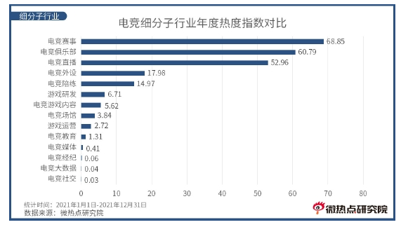 1?!半姼?jìng)賽事”領(lǐng)跑2021年電競(jìng)細(xì)分行業(yè)熱度榜