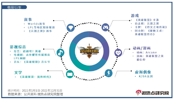 隨著泛娛樂(lè)時(shí)代來(lái)臨,電競(jìng)賽事不再是電子競(jìng)技內(nèi)容的唯一生產(chǎn)者,電競(jìng)產(chǎn)業(yè)不斷豐富自身精神內(nèi)核,拓展新的電競(jìng)內(nèi)容,來(lái)滿(mǎn)足年輕用戶(hù)的情感和消費(fèi)需求。以英雄聯(lián)盟為例,開(kāi)發(fā)自走棋、卡牌、回合制游戲,各游戲又各自推出賽事,不斷提高IP生態(tài)價(jià)值。此外,英雄聯(lián)盟在影視劇、綜藝、漫畫(huà)、網(wǎng)文等領(lǐng)域都有所拓展,不斷豐富衍生內(nèi)容領(lǐng)域,提高IP外延價(jià)值。
