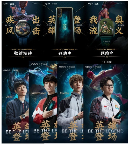 在電競(jìng)品牌商業(yè)合作方面,贊助商們不斷拓展合作方式,除了在比賽中露出外,品牌開(kāi)始探索與電競(jìng)、俱樂(lè)部、選手更深層次的連接,提升用戶(hù)轉(zhuǎn)化率。如此前英雄聯(lián)盟合作伙伴OPPO自制英雄聯(lián)盟S10非官方MV-《英雄登場(chǎng)-Be the Legend》,為賽事加油的同時(shí)也契合了OPPO Find X系列不斷探索的產(chǎn)品理念,收獲熱度及好評(píng)。同時(shí),OPPO還發(fā)布了與英雄聯(lián)盟聯(lián)名系列海報(bào),擴(kuò)大活動(dòng)傳播輻射面積。