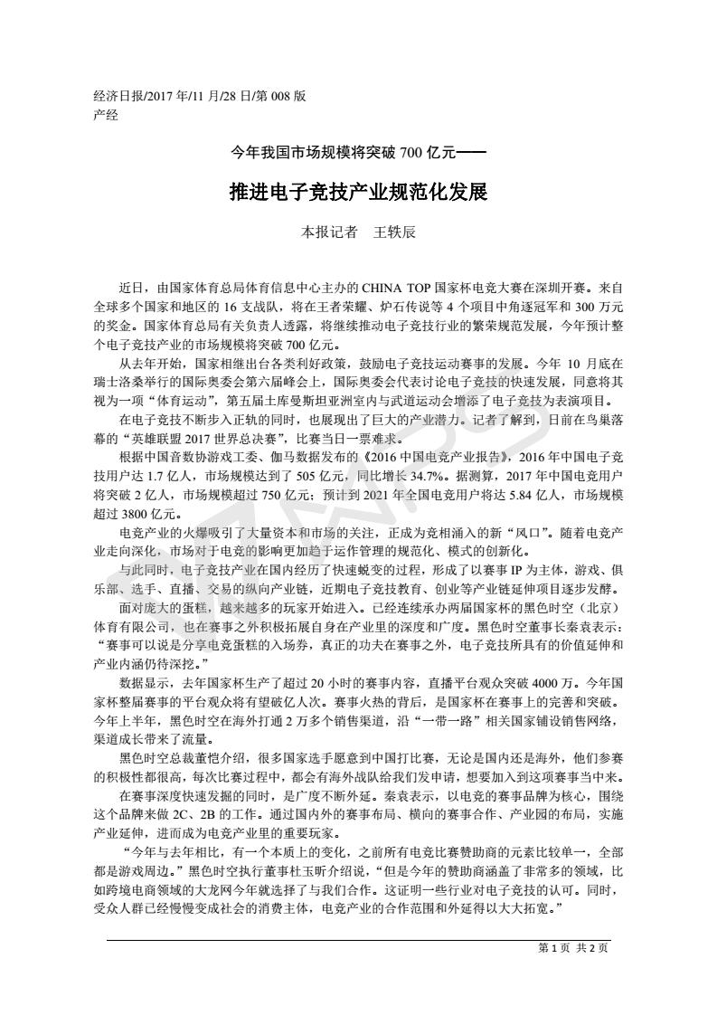 推進電子競技產(chǎn)業(yè)規(guī)范化發(fā)展