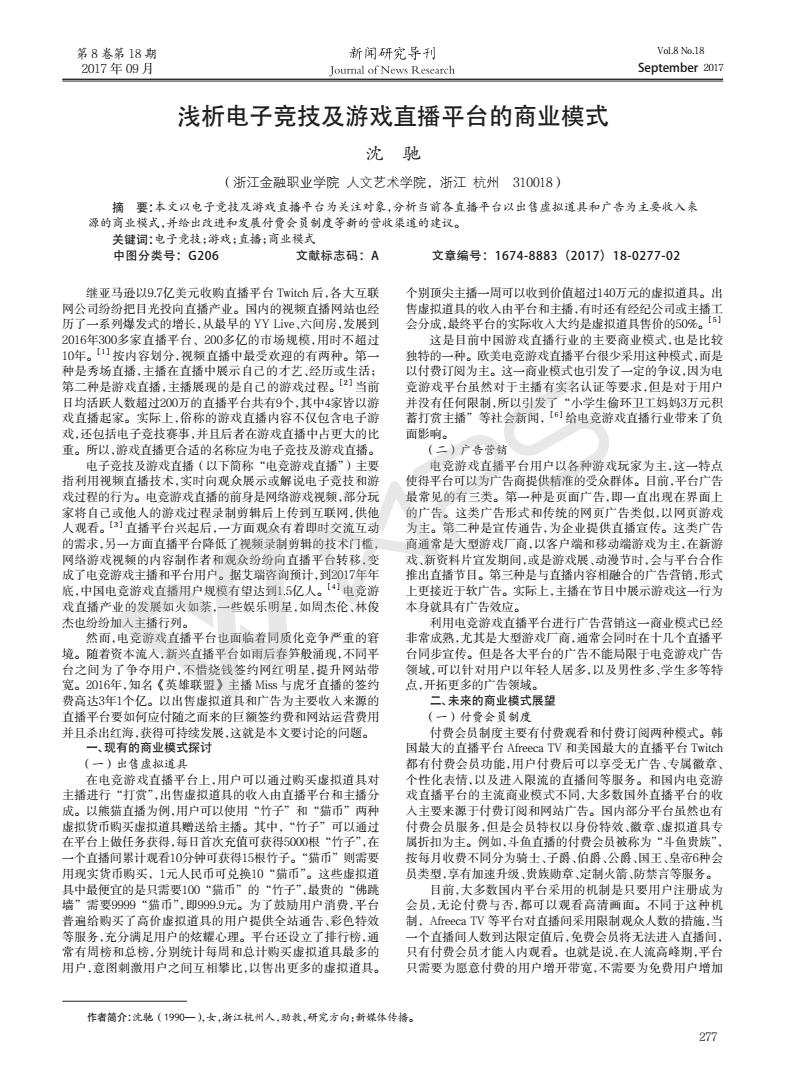 淺析電子競(jìng)技及游戲直播平臺(tái)的商業(yè)模式