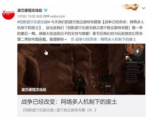 波蘭使館文化處管理的波蘭大使館的官方微博,已然成為波蘭游戲?qū)χ袊?guó)的宣傳渠道。