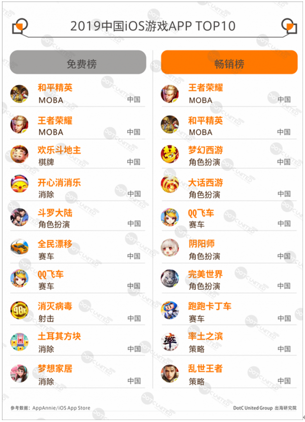 2019年中國(guó)iOS App Store游戲免費(fèi)榜冠軍無懸念花落騰訊旗下《和平精英》。《和平精英》接力《絕地求生:刺激戰(zhàn)場(chǎng)》于2019年5月上市,下載量方面憑借《絕地求生:刺激戰(zhàn)場(chǎng)》絕對(duì)的玩家基礎(chǔ),重新上市后走勢(shì)依舊堅(jiān)挺。除免費(fèi)榜外,《和平精英》在暢銷榜僅次于《王者榮耀》排名第二。目前,該游戲在國(guó)內(nèi)App Store的收入超過6億美元,加上其海外版《PUBG MOBILE》在全球各市場(chǎng)的卓越表現(xiàn),《和平精英》系列已成為目前全球最賺錢的戰(zhàn)術(shù)競(jìng)技手游。
