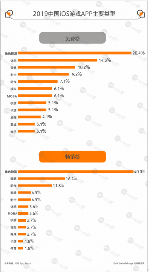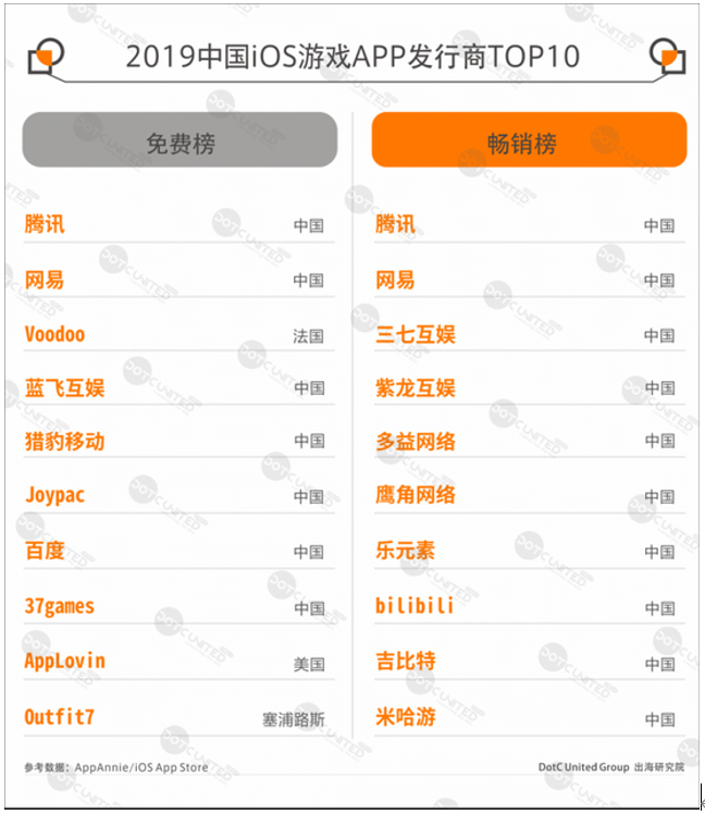 統(tǒng)計(jì)中國(guó)iOS App Store游戲榜TOP200結(jié)果顯示,免費(fèi)榜TOP200中,海外游戲約30余款,約占16%。暢銷榜TOP200中海外游戲僅10余款,上述也有提及,中國(guó)雖不是高度封閉的市場(chǎng),但本土廠商實(shí)力強(qiáng)勁,只有海外極少數(shù)大廠的游戲能分得一杯羹。