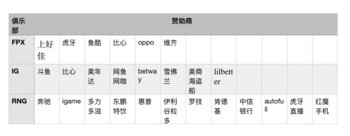 反之,影響力的不足也意味著商業(yè)化道路的坎坷。去年FPX戰(zhàn)績平平,故未能吸引贊助商,今年以來戰(zhàn)隊頻頻告捷,贊助商也逐漸增多,但由于影響力相對較低的緣故,贊助商相比RNG和IG要少許多。