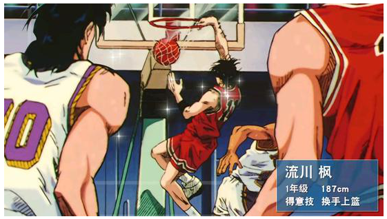 不僅如此,游戲中每名球員的技能動作,都依循動畫原型進(jìn)行設(shè)計,通過動畫捕捉再度演繹的“罰球線起跳”“換手上籃”“大猩猩暴扣”等代表性招式,展現(xiàn)櫻木花道、流川楓、赤木剛憲等熟悉角色最具辨識度的一面。