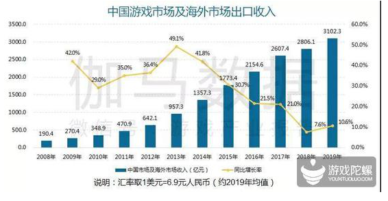 伽馬數(shù)據(jù)(微信號:游戲產(chǎn)業(yè)報告)發(fā)布的《2019中國游戲產(chǎn)業(yè)年度報告》顯示:中國游戲市場和海外市場出口收入整體增速再次提升,收入超過3100億,增幅達到10.6%。
