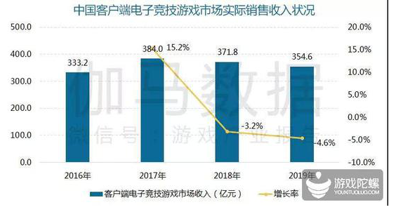 2019年中國移動電子競技游戲市場實際銷售收入仍然保持著較高的增長率,目前移動電子競技游戲在移動游戲市場的占有率超過四成,而客戶端電子競技游戲占據(jù)客戶端游戲市場約六成份額,未來移動電子競技游戲市場仍有拓展空間。