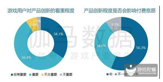 伽馬數(shù)據(jù)用戶調查顯示,超9成游戲用戶看重產(chǎn)品的創(chuàng)新,但從看重程度也能發(fā)現(xiàn),大部分用戶雖看重創(chuàng)新但卻并非苛刻,僅約1/3的用戶選擇了非??粗貏?chuàng)新。而在產(chǎn)品創(chuàng)新程度對付費意愿的影響上,大部分用戶的付費意愿會受到產(chǎn)品創(chuàng)新程度的影響。從這項調查可以看出,產(chǎn)品創(chuàng)新對于當下國內市場的用戶而言極具必要性。