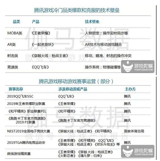 騰訊游戲在玩法設計與運營方面創(chuàng)新力評分居高。在玩法設計方面,騰訊游戲在多個移動端原本冷門的品類推出了首款爆款產(chǎn)品,如MOBA、競速、射擊、AR等,其中多個品類涉及的技術壁壘均得到突破,這是騰訊游戲在玩法設計方面創(chuàng)新力的主要體現(xiàn),也為國內移動游戲市場品類發(fā)展提供了助力。在運營方面,騰訊游戲是在移動游戲市場中較早應用游戲+電競模式的企業(yè)。結合電競賽事,產(chǎn)品可以在更大范圍得到曝光,即使用戶流失后仍有機會通過賽事直播或視頻接觸到產(chǎn)品信息,不但可以擴大用戶新增還有機會使用戶回流,在游戲長線運營上起到重要作用。2019年,結合電競賽事運營仍屬于較為高效的移動游戲運營手段。