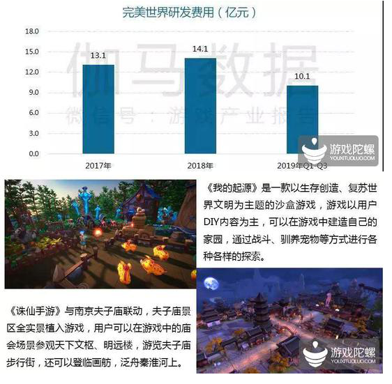 完美世界成立于國內游戲市場發(fā)展早期,自成立起就立足自研,建立了研發(fā)團隊,研發(fā)范圍覆蓋端游、移動游戲、主機游戲、VR游戲等,推動完美世界游戲業(yè)務持續(xù)發(fā)展,其自研引擎Angelica 3D首創(chuàng)了飛行系統(tǒng)和形象自定義系統(tǒng),是完美世界游戲研發(fā)的核心創(chuàng)新力。在完美世界研發(fā)技術的支撐下,企業(yè)布局移動游戲業(yè)務,推出多款“端改手”精品產(chǎn)品,如《誅仙手游》《武林外傳手游》《完美世界》手游等,其中《完美世界》手游于2019年3月上線,上線首月19天排名暢銷榜首位?;谕昝朗澜绲淖匝心芰?,其移動游戲業(yè)務快速增長,未來將有更多創(chuàng)新產(chǎn)品可期。