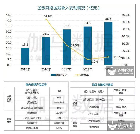 根據(jù)伽馬數(shù)據(jù)的預估,2019年游族網(wǎng)絡的游戲總營收將達到38.6億元,同比增長11.5%,產(chǎn)品品類、數(shù)量與海外市場的拓展是其打破發(fā)展壁壘的關鍵。在產(chǎn)品方面,游族網(wǎng)絡堅持自研和代理兩條發(fā)展線,并在品類上加以拓展,目前覆蓋有卡牌、SLG、ARPG和MMORPG,儲備新品中又拓展了MOBA、二次元等品類和領域的產(chǎn)品。此外,產(chǎn)品同源IP續(xù)作成為游族網(wǎng)絡的特殊手段,自研產(chǎn)品《少年三國志》《女神聯(lián)盟》均推出續(xù)作,續(xù)作產(chǎn)品擁有前作的用戶基礎往往影響力更強,如《少年三國志2》上線即迅速獲得較高的市場反饋。在海外市場拓展方面,游族網(wǎng)絡擁有多年海外發(fā)行經(jīng)驗,多個海外市場產(chǎn)品收入表現(xiàn)穩(wěn)定,在此基礎上,2019年其發(fā)行的《圣斗士星矢:覺醒》先后登頂全球20個國家和地區(qū)iOS RPG類游戲暢銷榜。財報顯示,游族網(wǎng)絡在2019年上半年實現(xiàn)海外地區(qū)營業(yè)收入達到10.09億元,占總營業(yè)收入的58.36%,海外市場已經(jīng)成為游族網(wǎng)絡收入的中堅力量。
